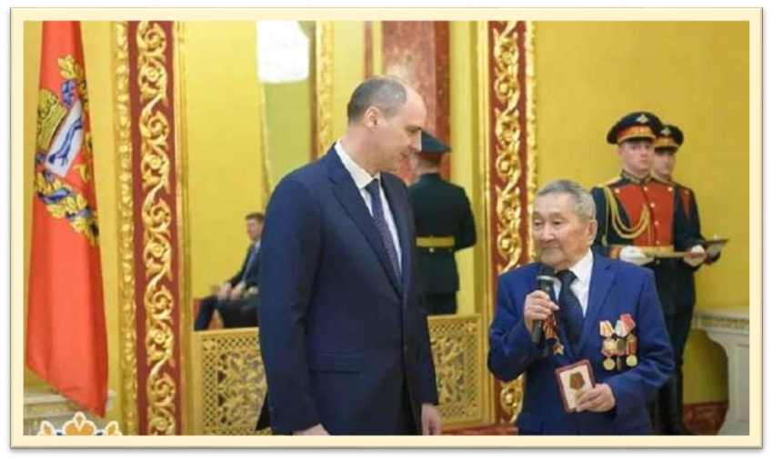 17 февраля 2025 года награждает медалью «80 лет Победы в Великой Отечественной войне 1941-1945 гг» участника войны Абдрахманова Якова Захаровича