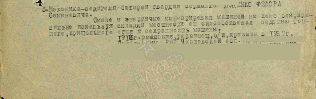ДОЦЕНКО ФЁДОР СЕМЁНОВИЧ: ГЕРОЙ ВЕЛИКОЙ ОТЕЧЕСТВЕННОЙ ВОЙНЫ