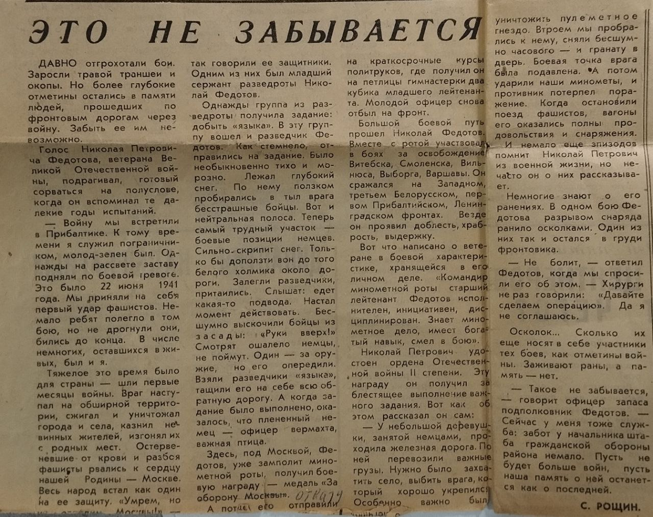 В нашей стране, я думаю, нет такой семьи, которую не коснулась бы Великая Отечественная война. В каждой семье есть те, кто участвовал в этом событии и мой прадед Федотов Николай Петрович - не исключение. «Нет в России семьи такой, где б не памятен был свой герой...».