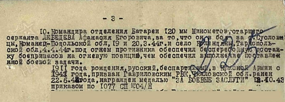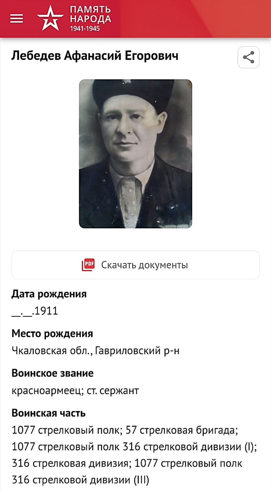 МОЙ ГЕРОИЧЕСКИЙ ДЕД. ЛЕБЕДЕВ АФАНАСИЙ ЕГОРОВИЧ