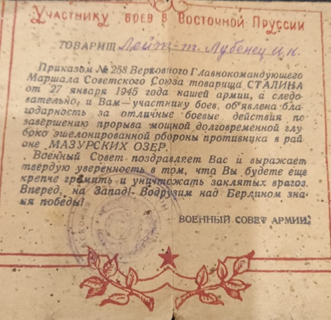 ГЕРОЙ ВЕЛИКОЙ ОТЕЧЕСТВЕННОЙ ВОЙНЫ. ЛУБЕНЕЦ ИВАН КУЗЬМИЧ