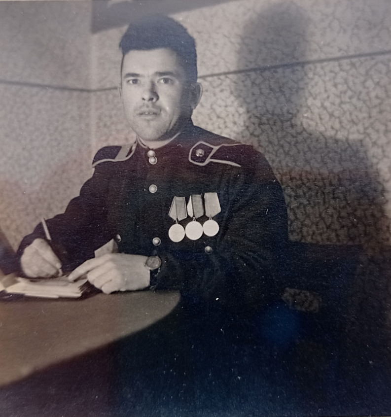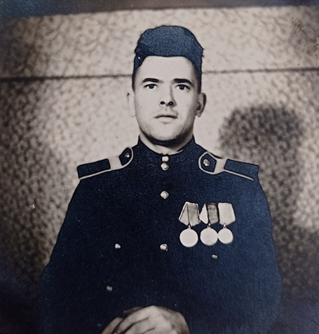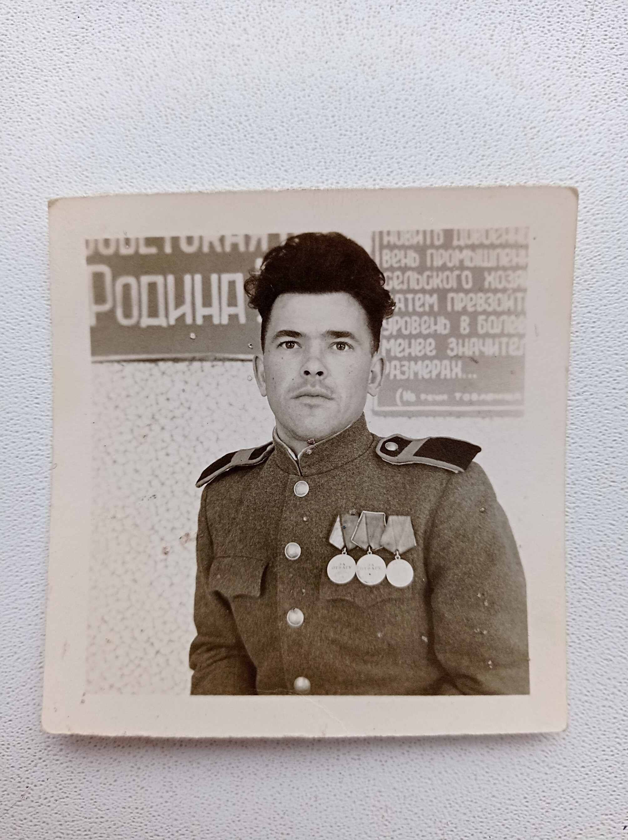 Раньше в армии служили по три года и участие в войне не считалось службой, потому даже после окончания Великой Отечественной войны мой прадед продолжал дослуживать до 1947 г. Был в Польше, город Познань. Также в Германии, город Калау 1946 г.