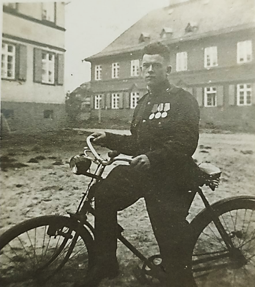 В качестве подарка ему достался велосипед согласно Постановлению Совета Народных Комиссаров Союза ССР от 25.09.1945 от Военного Коменданта города Калау. Сохранилась справка.