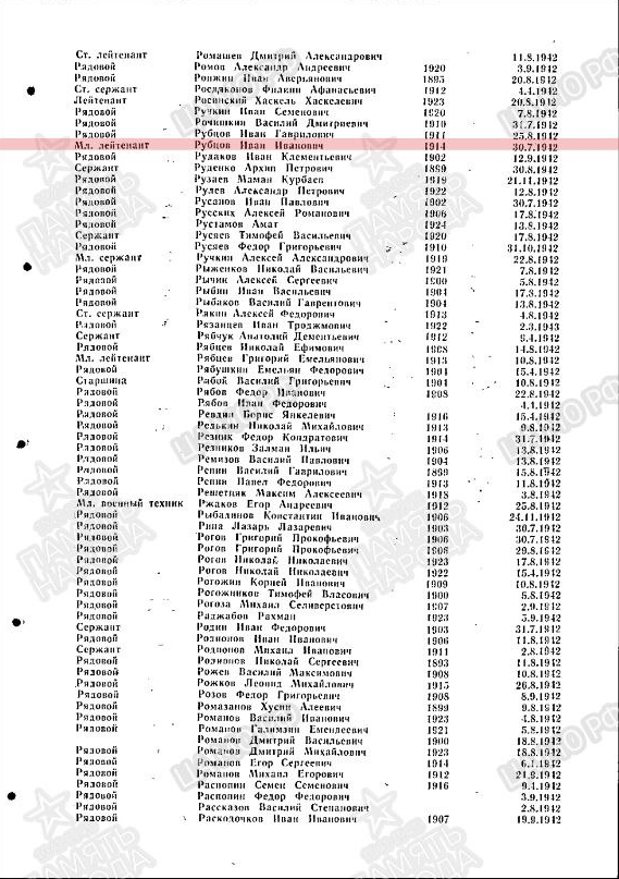 После взятия командования ротой на себя, в бою был тяжело ранен, но отказался идти в тыл и продолжил руководить подразделением. Под деревней Полунино им лично был уничтожен расчет одной пушки противника, которая стреляла по нашей пехоте. Позже в 1943 году мой прадед был второй раз тяжело ранен, ему ампутировали правую ногу выше колена, долго лежал и восстанавливался в госпитале. Он был награжден орденом Красного Знамени.