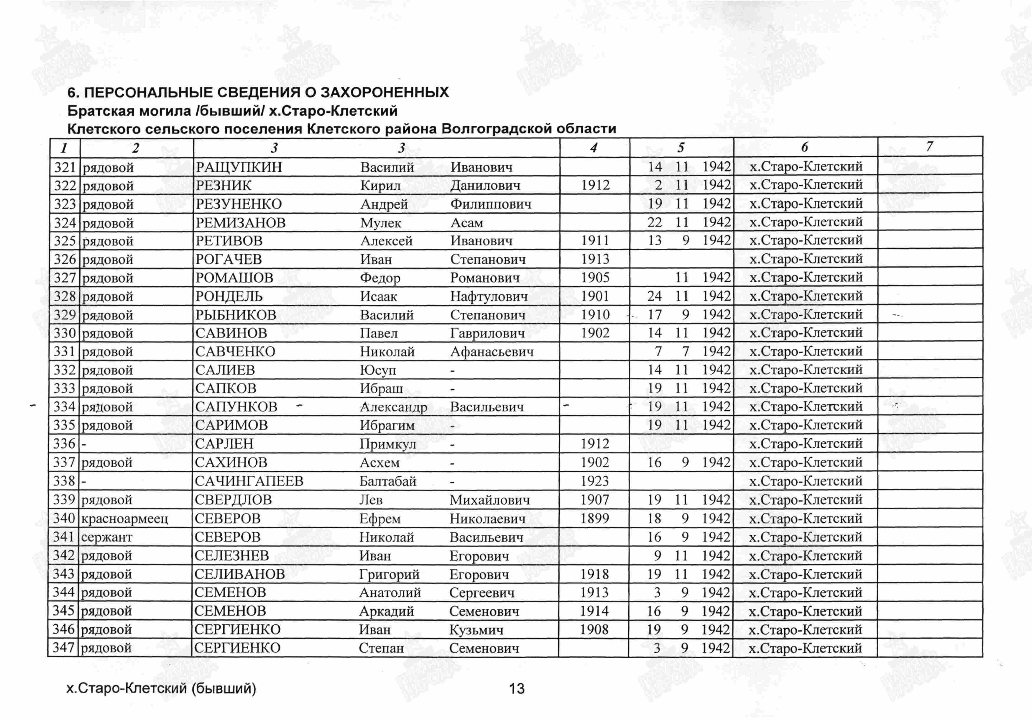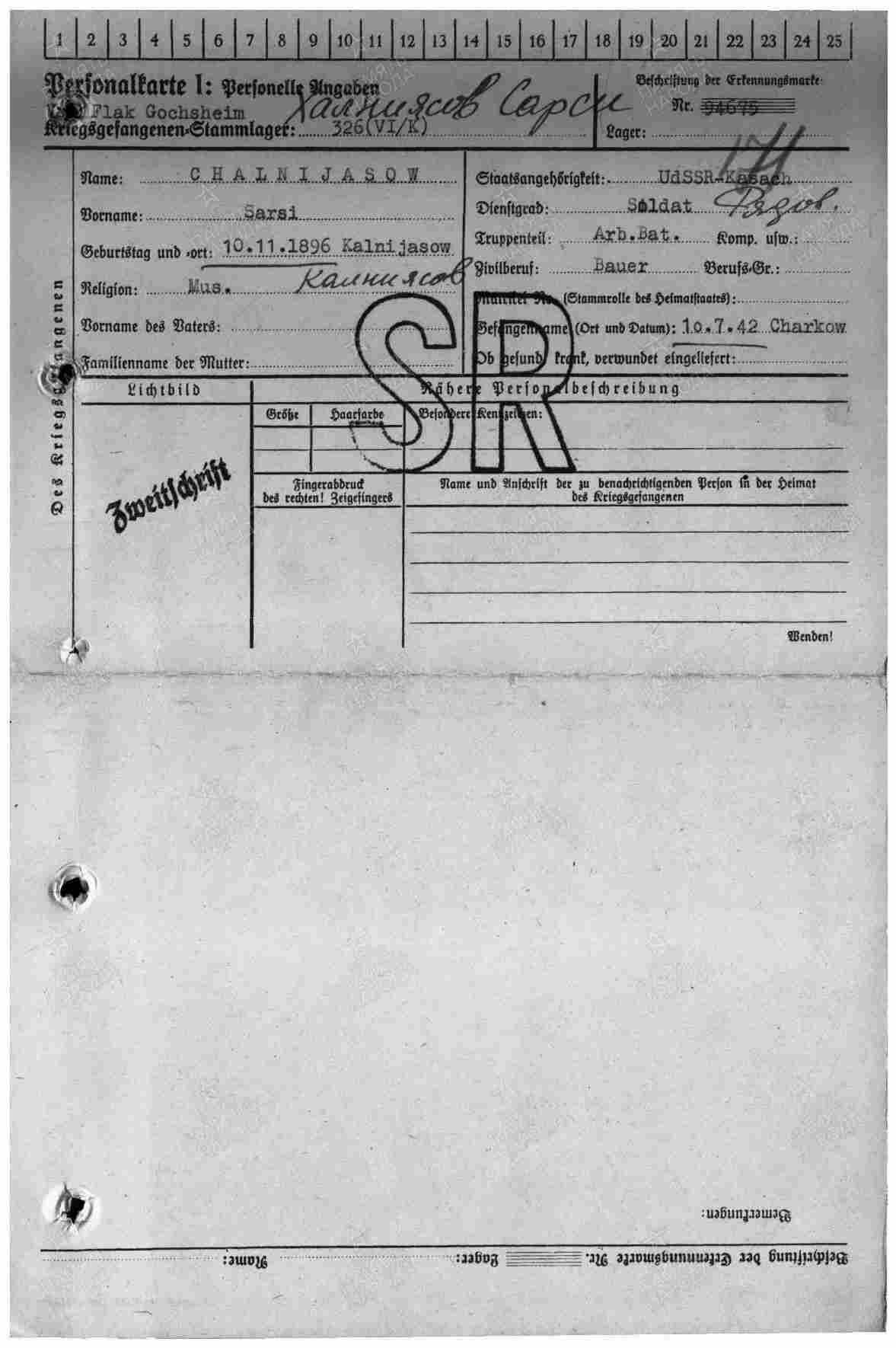 Документ о военнопленном Халниязове Сарсене Ертлесовиче