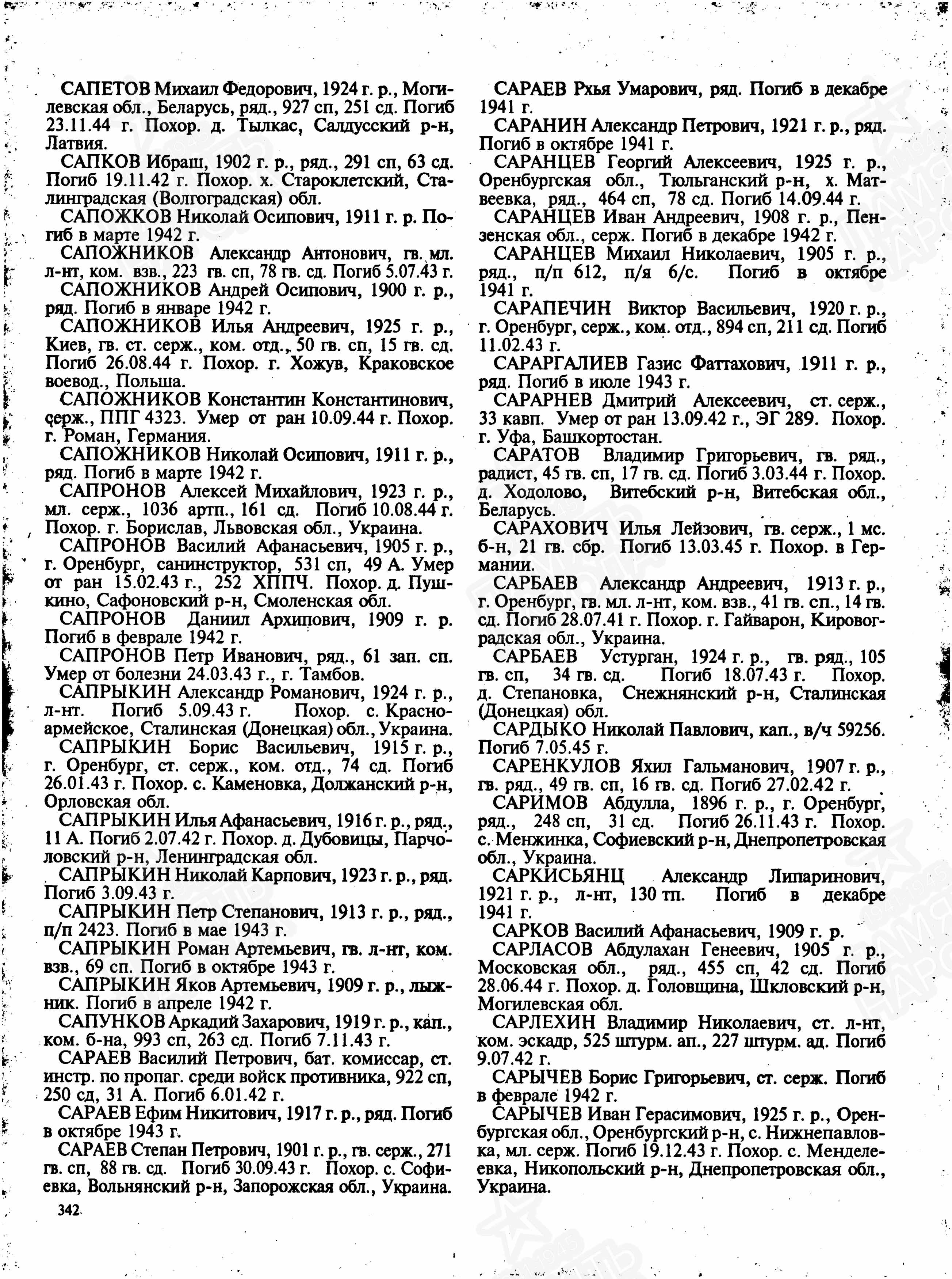 Донесение о безвозвратных потерях, в которых числился прадед под фамилией Сапков