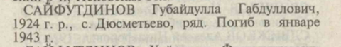 Младший брат прапрадедушки, Хайрулла Фасхугдинович Сайфутдинов, тоже не вернулся с полей войны. Он похоронен в Ростове на Дону.