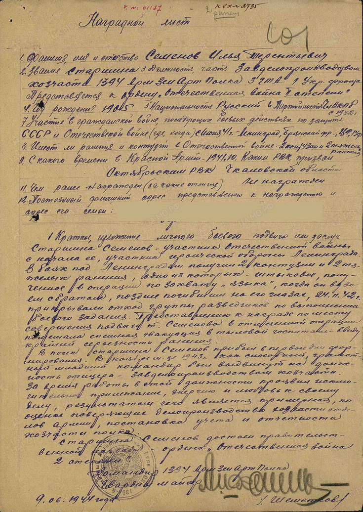 МОЙ ПРАПРАДЕД – ГЕРОЙ. СЕМЕНОВ ИЛЬЯ ТЕРЕНТЬЕВИЧ